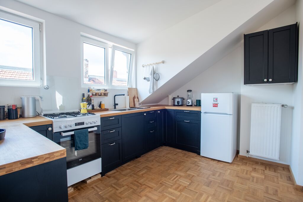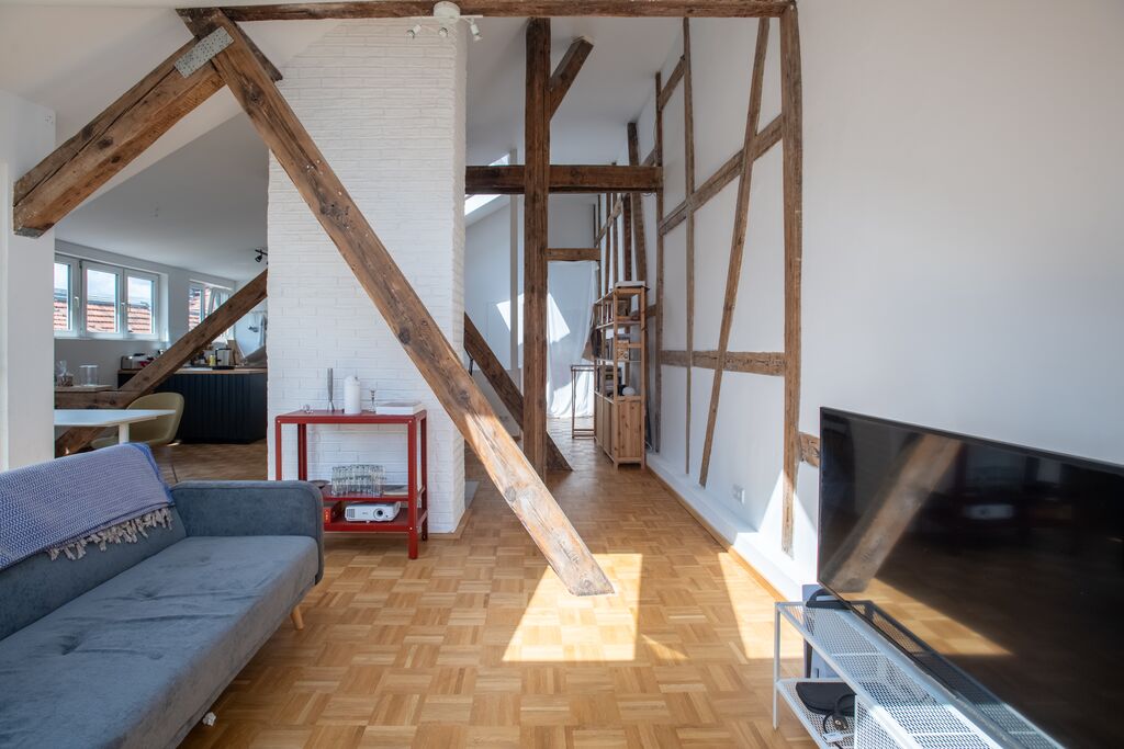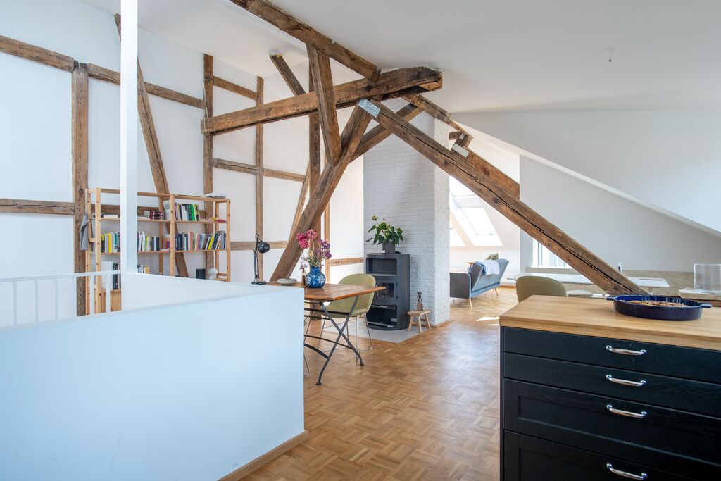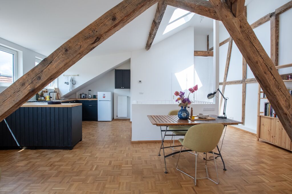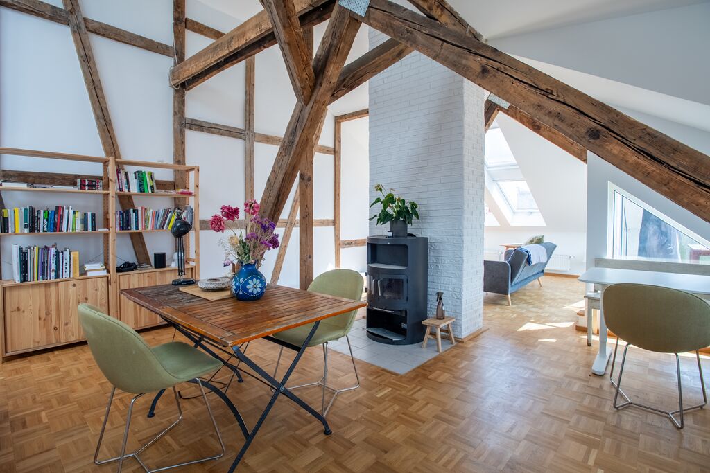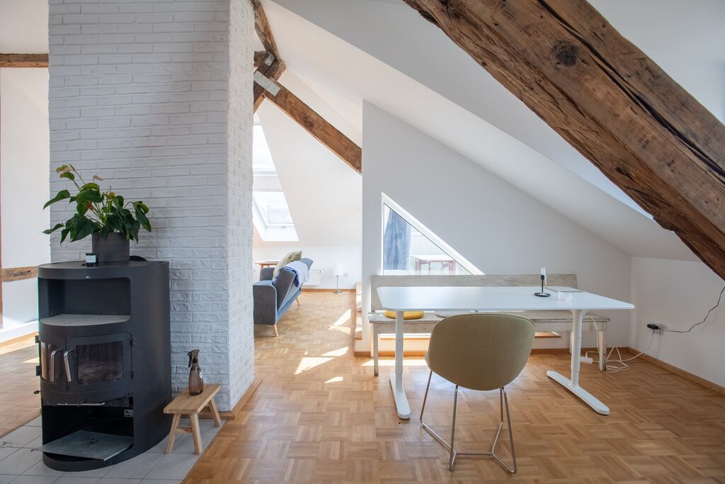 Die Wohnung befindet sich im Dachgeschoss eines charmanten Stuckaltbaus und vereint stilvolles Wohnen mit zeitgemäßem Komfort. Die klassischen Elemente des Altbaus verleihen der Wohnung einen besonderen Charme.