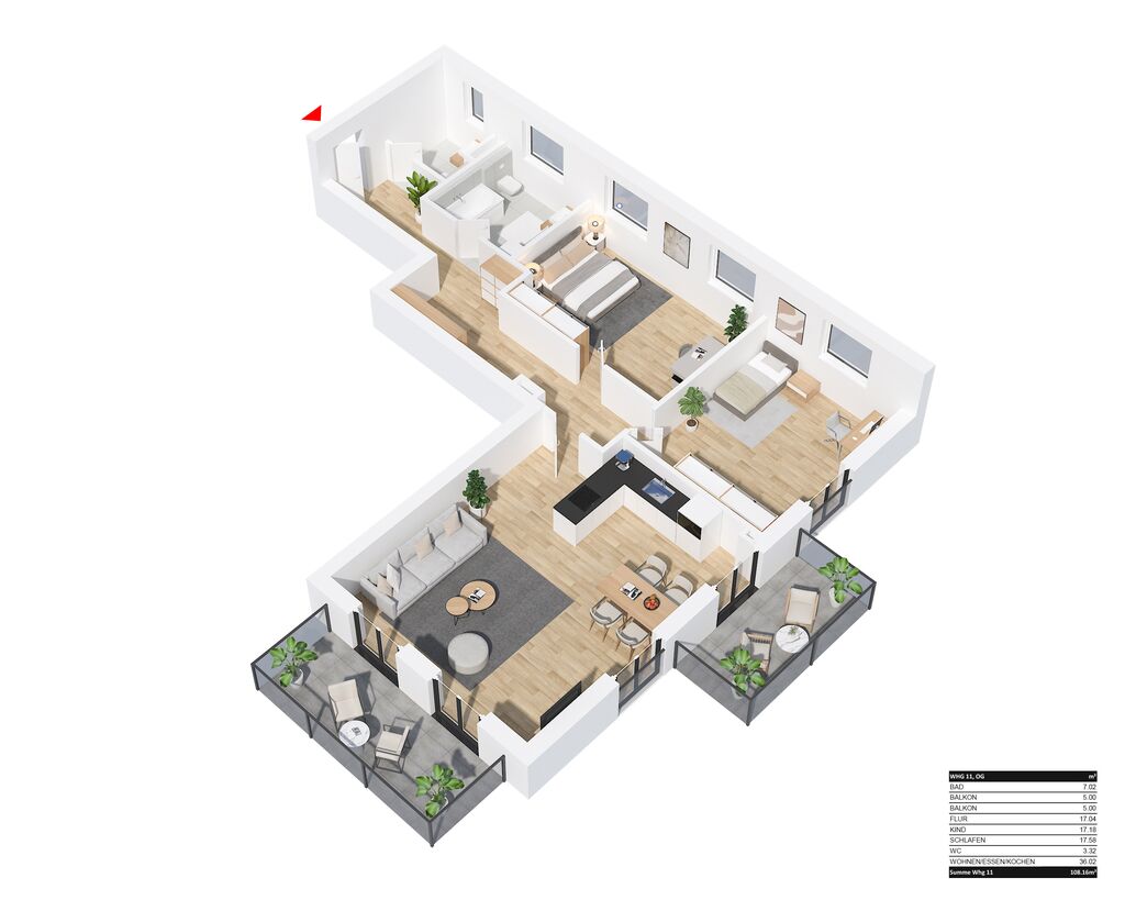 • extragroße Terrassen und Balkone